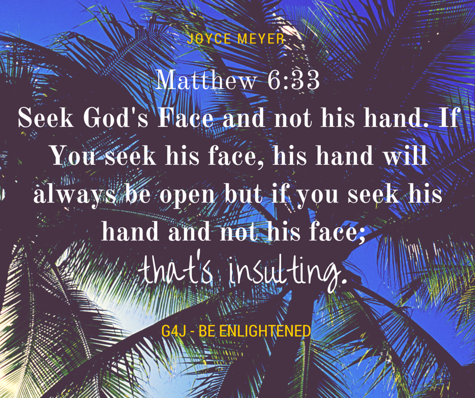 We all know that Matt 6:33 says “But seek ye first the kingdom of God, and his righteousness; and all these things shall be added unto you.” so why do we continue to seek God’s hand and not his face?