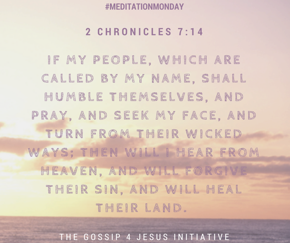 “IF MY PEOPLE, WHICH ARE CALLED BY MY NAME, SHALL HUMBLE THEMSELVES, AND PRAY, AND SEEK MY FACE, AND TURN FROM THEIR WICKED WAYS; THEN WILL I HEAR FROM HEAVEN, AND WILL FORGIVE THEIR SIN, AND WILL HEAL THEIR LAND.”