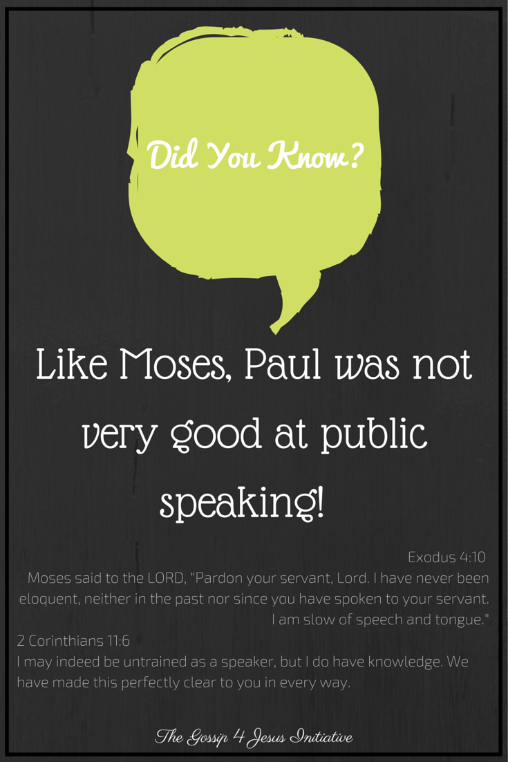 Moses and Paul both had difficulties with speaking, they were not eloquent speakers but they did not let that affect them in preaching the gospel.