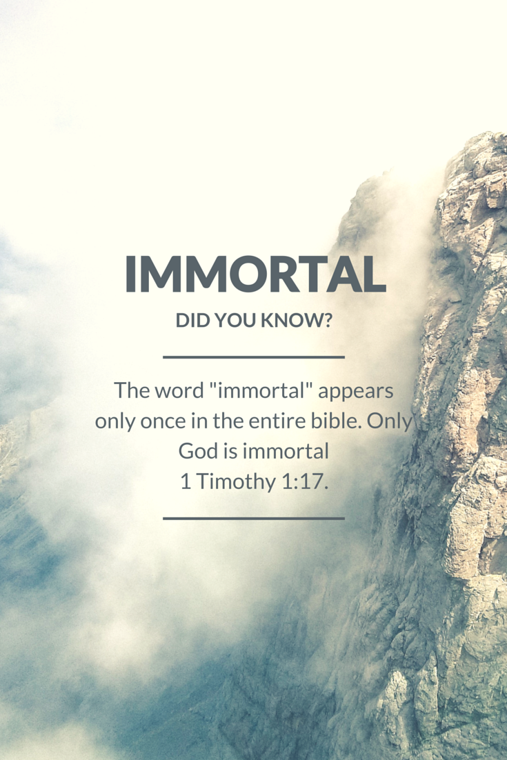 Immortal. faithoplov / July 10, 2015 #FunFactFriday – Because TGIF! 1 Timothy 1:17 – Now unto the King eternal, immortal, invisible, the only wise God, be honour and glory for ever and ever. Amen. Share this: Share on X (Opens in new window) X Share on LinkedIn (Opens in new window) LinkedIn Share on Facebook (Opens in new window) Facebook Email a link to a friend (Opens in new window) Email Share on Pinterest (Opens in new window) Pinterest Print (Opens in new window) Print Share on Tumblr (Opens in new window) Tumblr Share on Reddit (Opens in new window) Reddit Share on WhatsApp (Opens in new window) WhatsApp Like Loading...